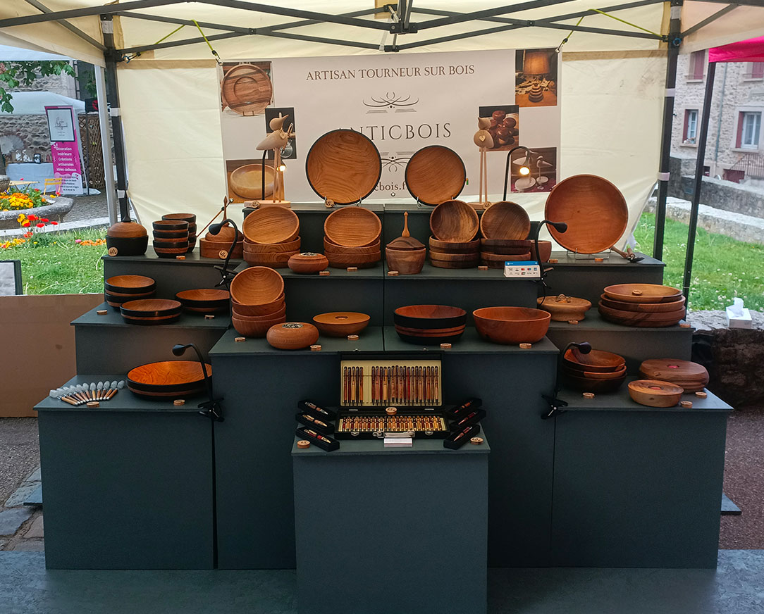 Je suis artisan tourneur sur bois installé à Montfaucon En Velay, sur le territoire du Vivarais Lignon, Haute-Loire, sous le nom ANTICBOIS (Antic pour faire référence au caractère ancestral de mon activité).